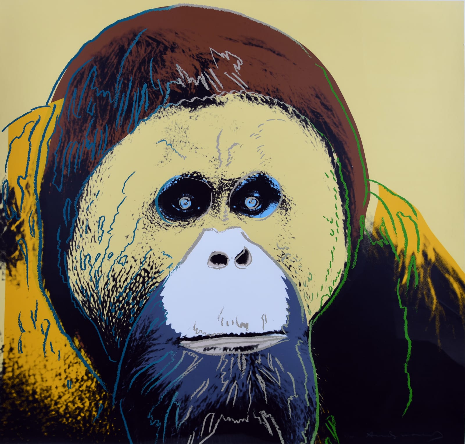 Serginin merkezinde, Andy Warhol’a ait 10 eserden oluşan dikkat çekici bir seçki yer alıyor. Warhol’un 1975 tarihli Mick Jagger portresi, sanatçının popüler kültürle ilişkisini simgeleyen önemli bir örnek olarak öne çıkıyor. Andy Warhol’a ait 1983 tarihli Orangutan ise, Endangered Species serisinden en çok aranan baskılar arasında bulunuyor.