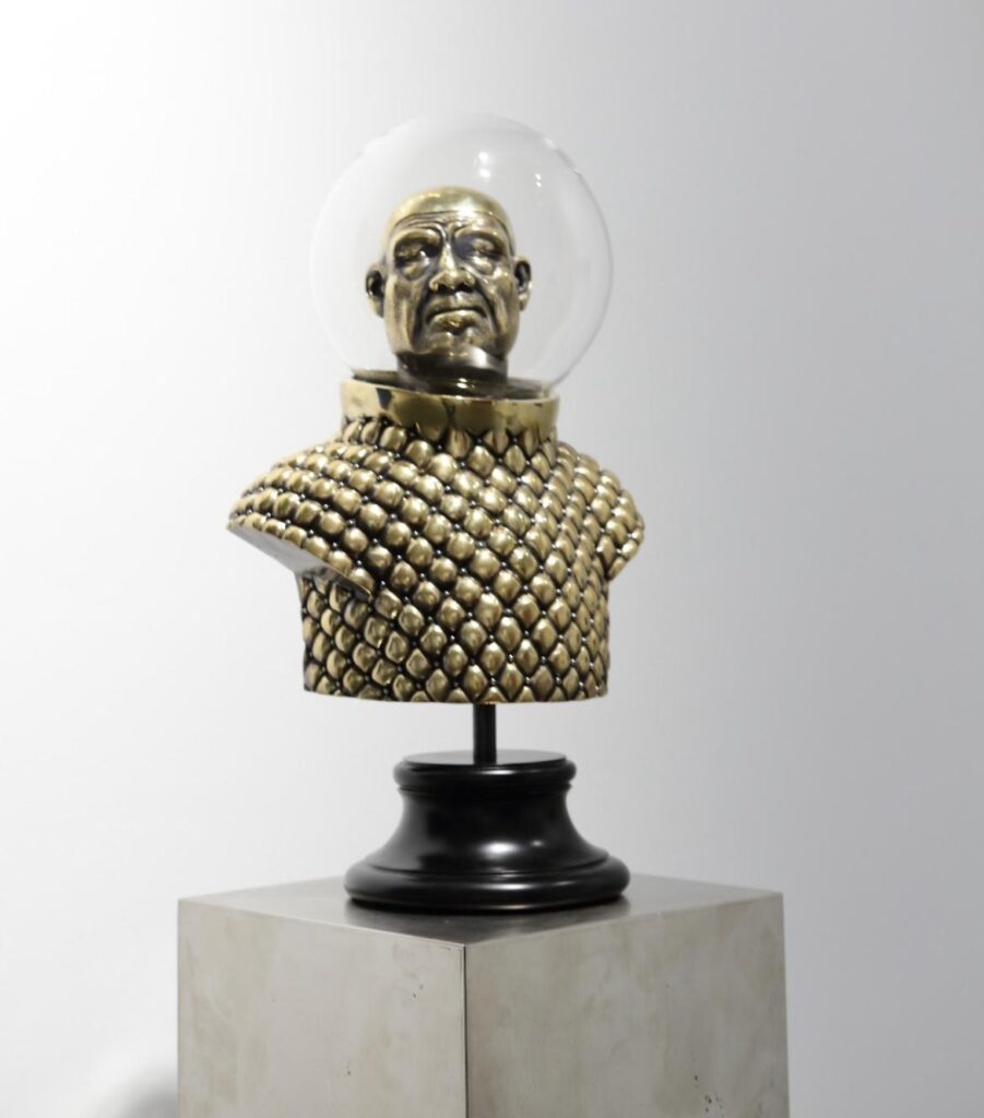 Erdal Duman, Kapitone, Pirinç döküm ve cam, 25 × 25 × 145 cm, 2022